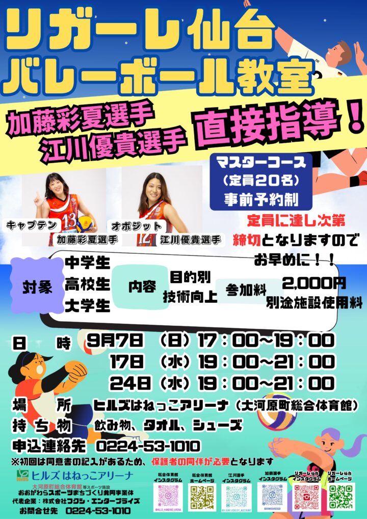 9月「リガーレ仙台バレーボール教室」の開催について