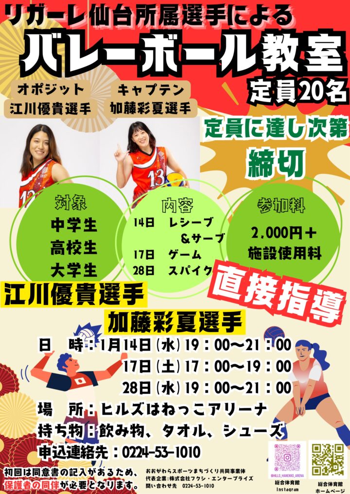 教室 - 1月「リガーレ仙台所属選手によるバレーボール教室」の開催について