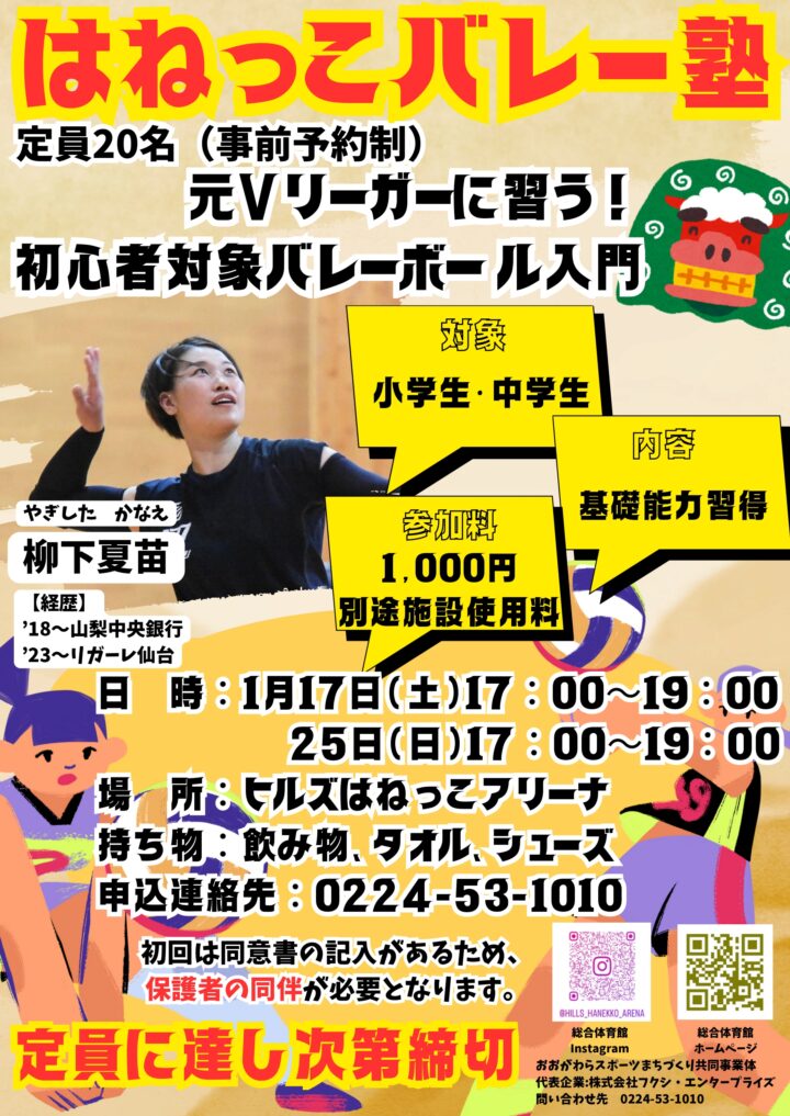 教室 - 1月「リガーレ仙台所属選手によるバレーボール教室」の開催について