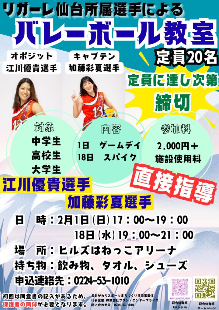 2月「リガーレ仙台所属選手によるバレーボール教室」の開催についてNEW!
